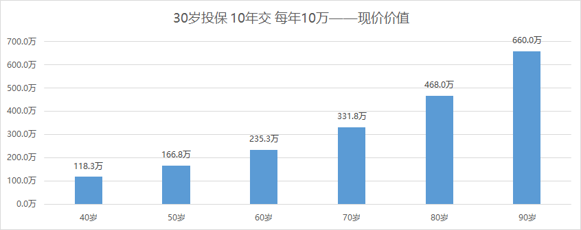 如果每年固定拿出一部分,强制为自己养老做个储备呢?比如,30岁开始,每年的结余里拿出10万元投「华贵爱终身寿险」,交10年,等到退休后用作养老补充: